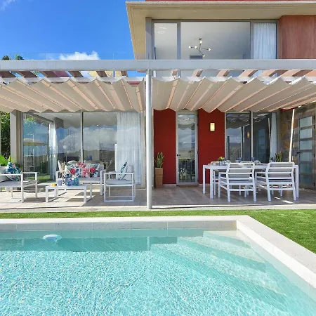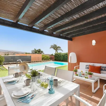 Villa Morada Sonneland con piscina privada climatizada Maspalomas oferece uma acomodação a 28 minutos de carro do aeroporto de de Gran Canaria. 3 quartos, cozinha equipada e 3 banheiros estão disponíveis no local.